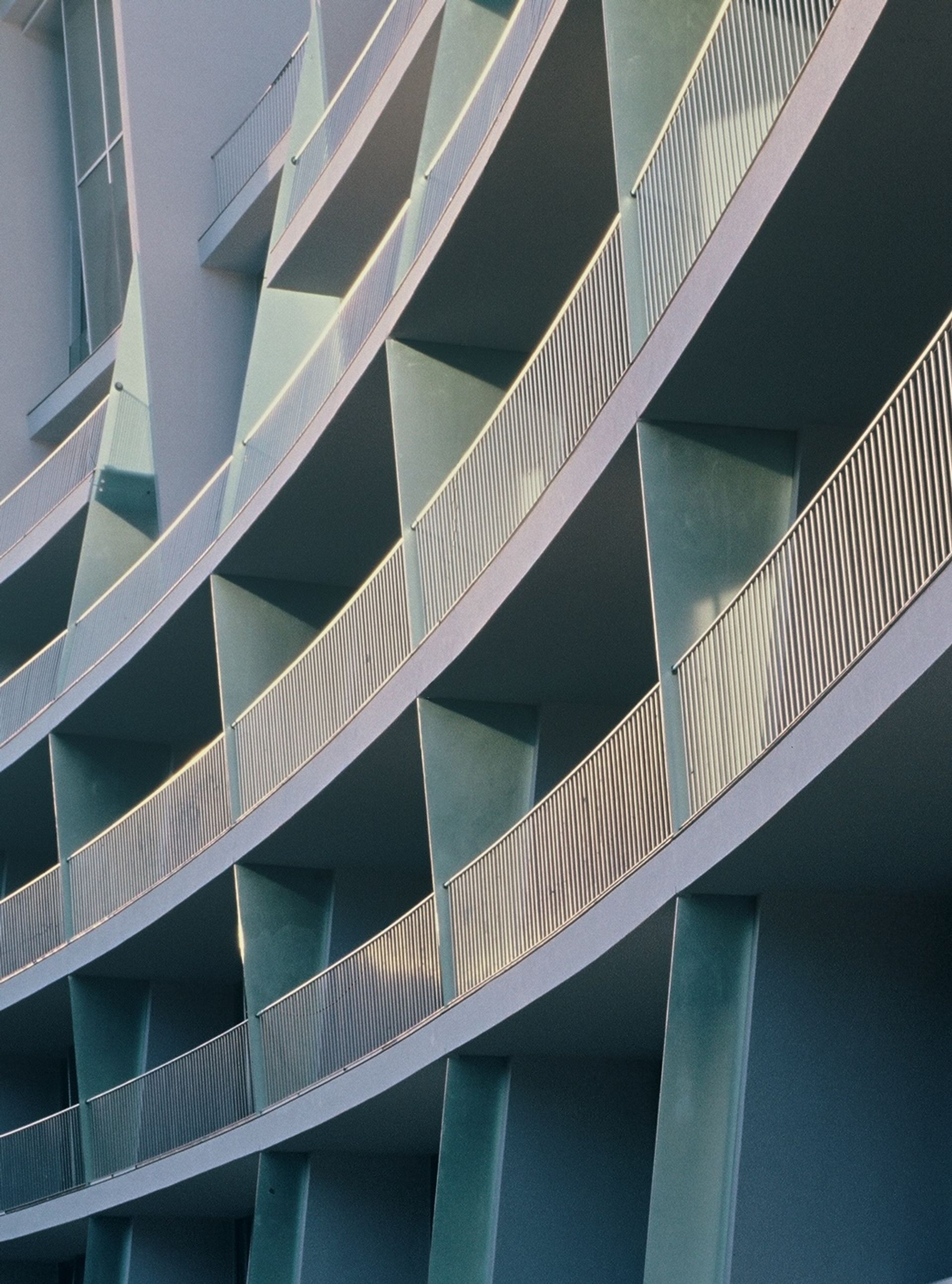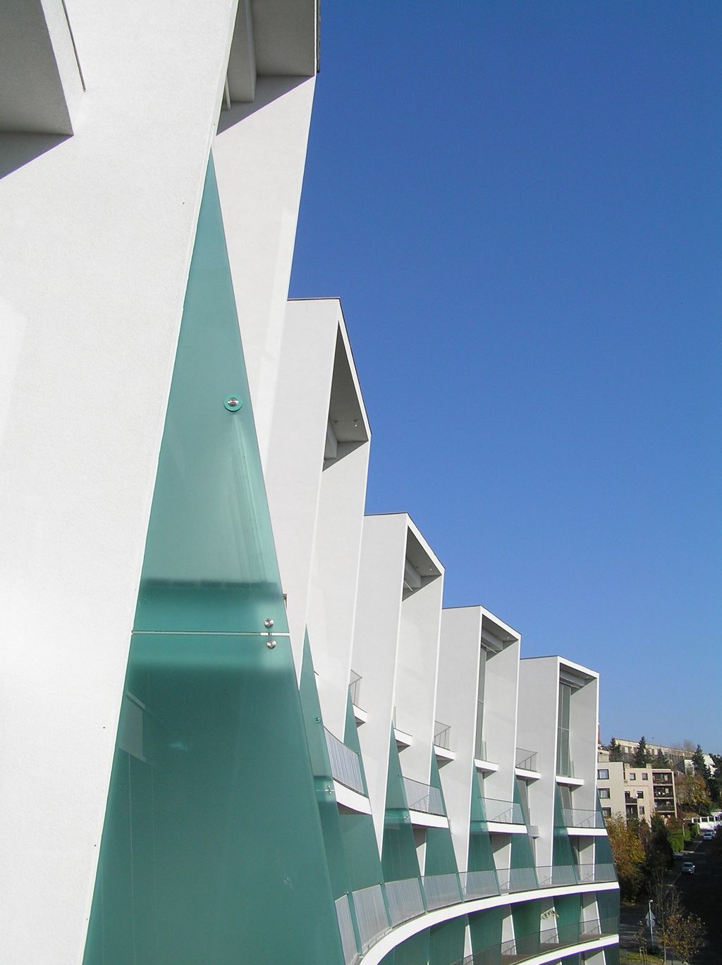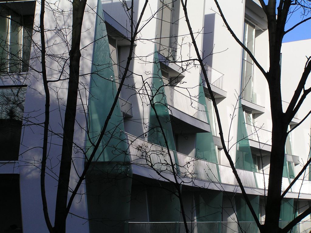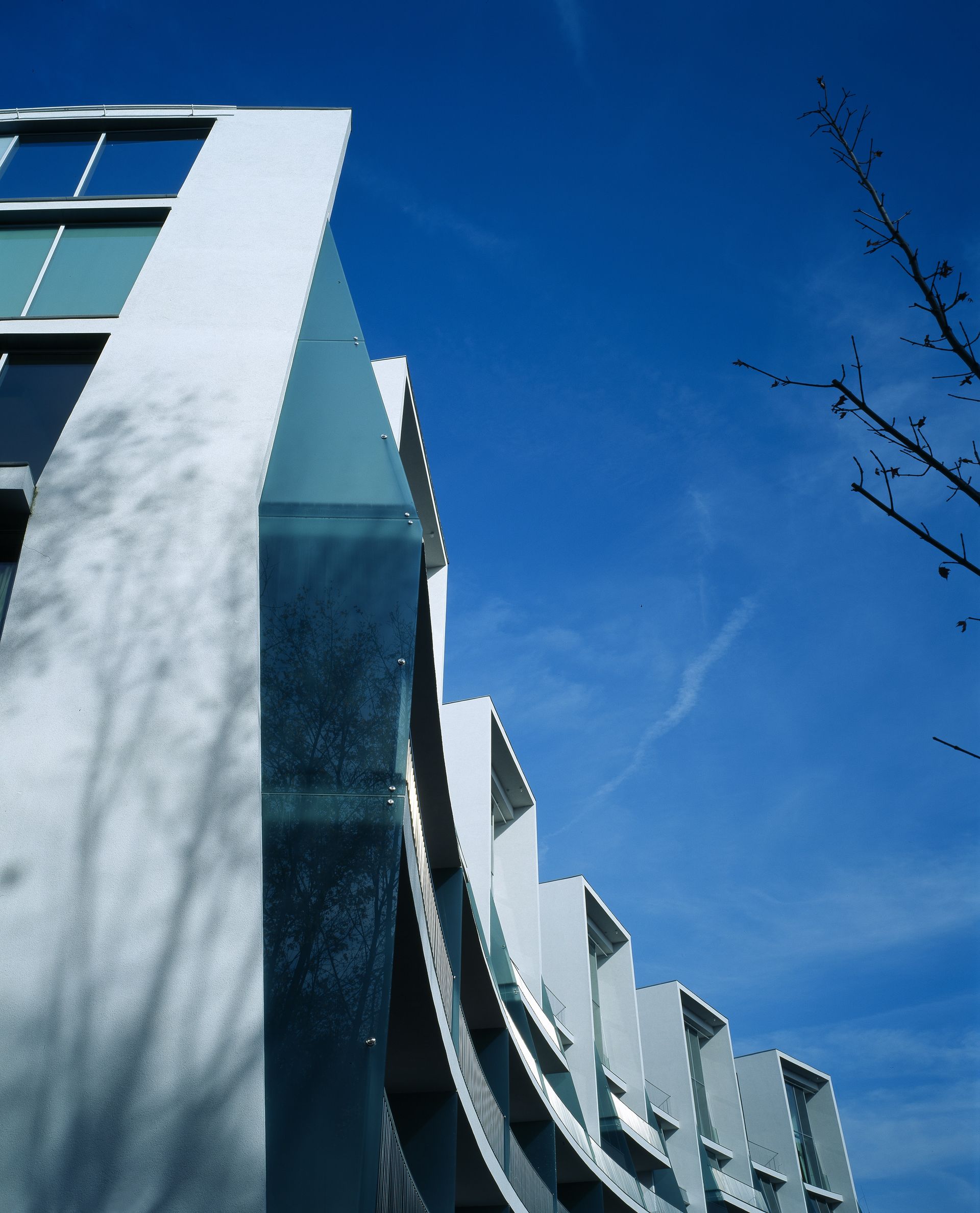 Západní fasáda je navržena z pískovaného skla, aby rezidenti cítili dostatek soukromí i přes některé blíže postavené sousední domy.