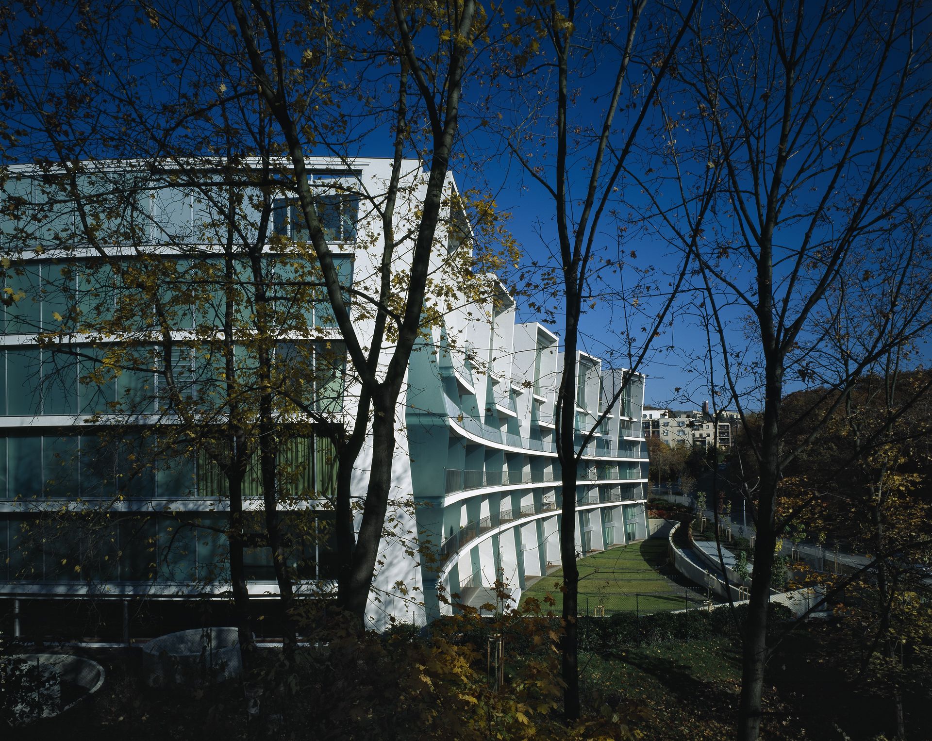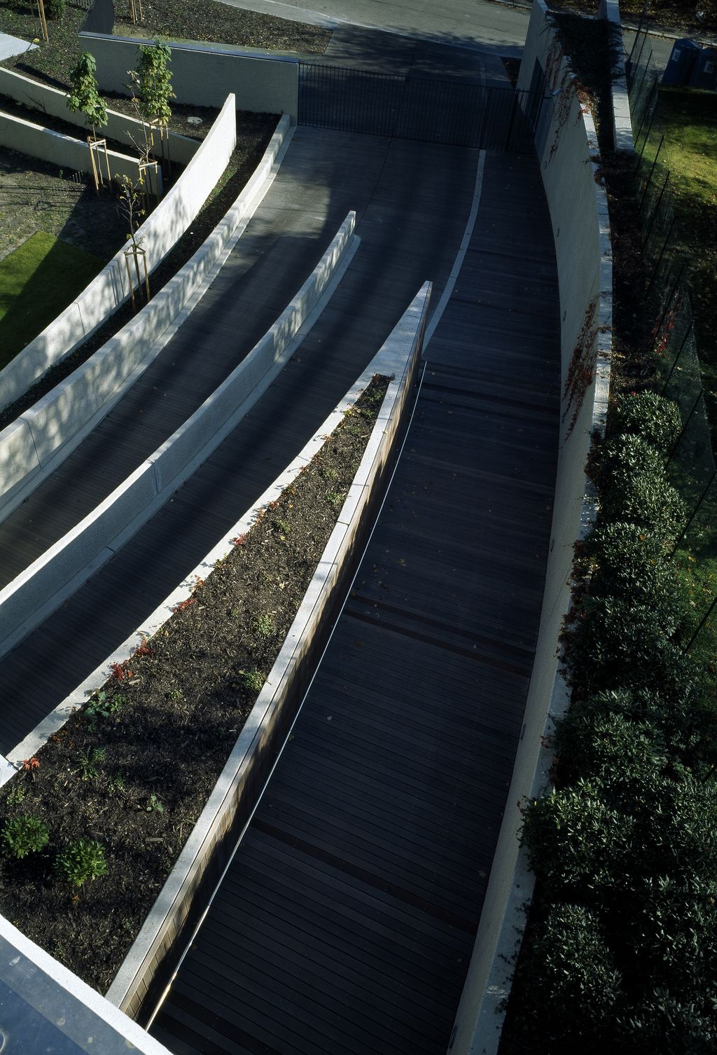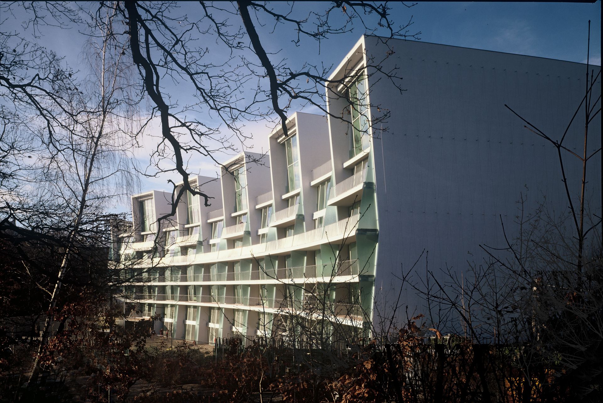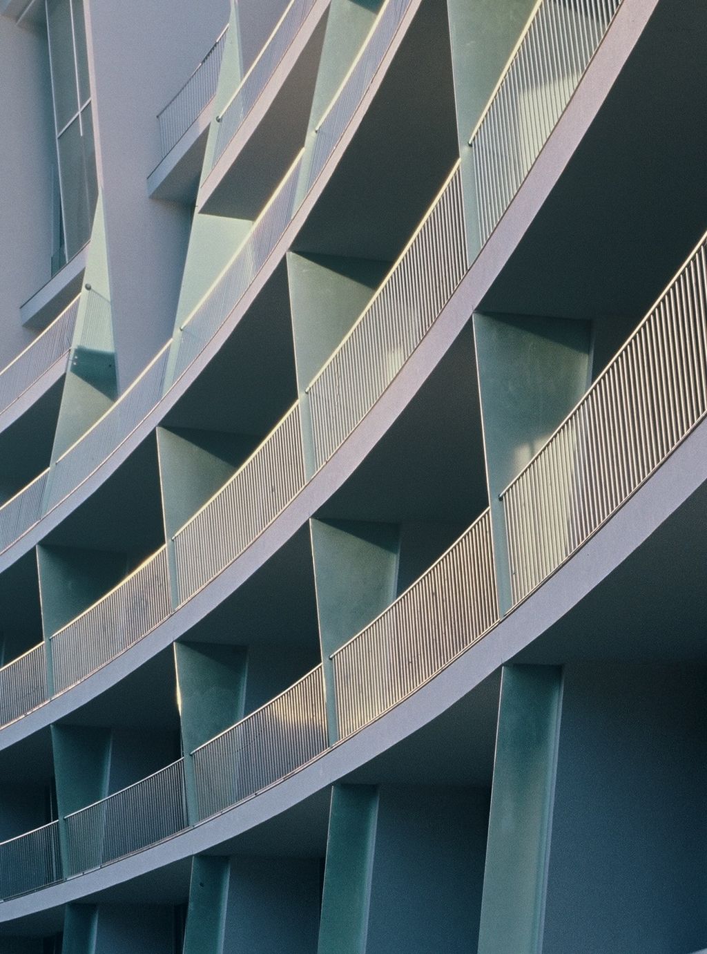 Západní fasáda je navržena z pískovaného skla, aby rezidenti cítili dostatek soukromí i přes některé blíže postavené sousední domy.